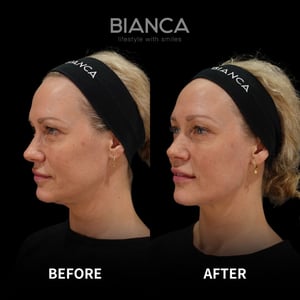 Botox: Smooths dynamic wrinkles by relaxing facial muscles (forehead, jawline, between the eyebrows etc.).